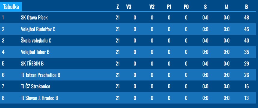 Konečná tabulka U16 jihočeské skupiny za rok 2024/2025