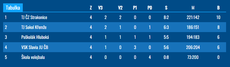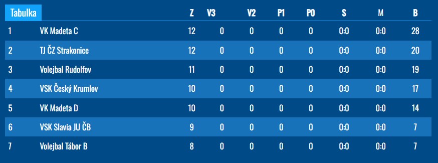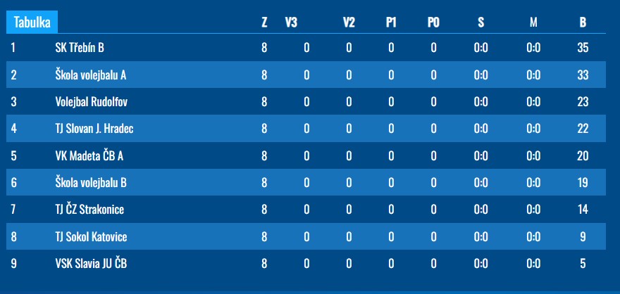 Aktuální tabulka kadetek jihočeské skupiny v roce 2025/2026