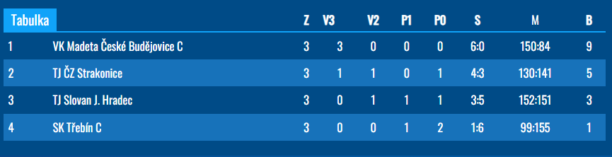 Konečná tabulka juniorek jihočeské skupiny za rok 2022/2023